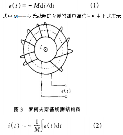 在有源電子式電流互感器中.作為一次電流采樣傳感頭的元件有很多種、有傳統(tǒng)的電磁式電流互感器、特別規(guī)劃的小信號(hào)電流互感器、分流電阻器、羅柯夫斯基線圈等。其間羅柯夫斯基線圈以其杰出的頻率響應(yīng)、高的檢測(cè)準(zhǔn)確度和結(jié)構(gòu)簡(jiǎn)略、本錢賤價(jià)等特性而成為首選。所以依據(jù)羅柯夫斯基線圈的有源ETA也就成為最具發(fā)展?jié)摿Φ墓怆娀ジ衅鳟a(chǎn)品,它既可以用作封閉電器GIS、插接式組合電器PASS中的電流檢測(cè)設(shè)備,又可用于敞開式獨(dú)立有源ETA。羅柯夫斯基線圈是將導(dǎo)線均勻地繞在一個(gè)非磁性材料的骨架上制作而成的空心線圈,如圖3所示。載流導(dǎo)線從線圈中心穿過,當(dāng)導(dǎo)線上有電流經(jīng)過期,在線圈的兩頭將會(huì)發(fā)生一個(gè)感應(yīng)電勢(shì)e,其大小為