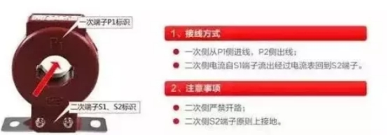 電流互感器的一次側電流是從P1端子進入,從P2端子出來;即P1端子聯接電源側,P2端子聯接負載側。